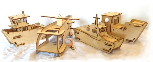 Four boats (more soon) and one helicopter, lots of fun assembling these toys, lots of fun playing with them. Available here, etsy and ebay for just £12 each kit including postage, they are ideal presents for girls and boys.