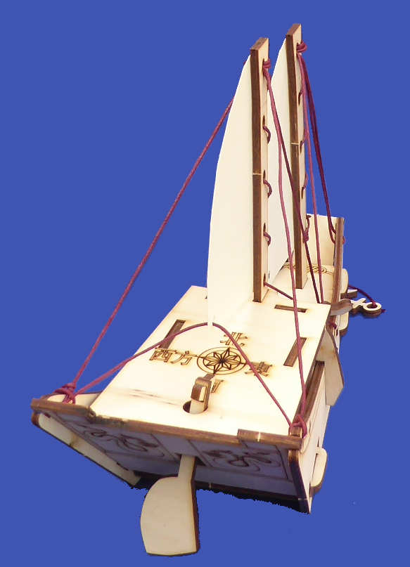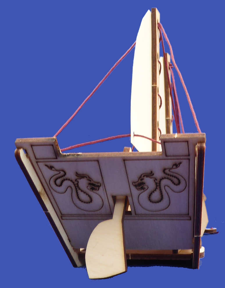 A Junk is an ancient type of Chinese sailing ship, traditionally with fully battened sails, which are the bars running across the sail. This construction toy uses a schooner rig – one of many variants – for ease of assembly. The name Chinese Junk describes many types of coastal or river ships. They have been used as cargo ships, pleasure boats, or houseboats. They vary greatly in size and there are significant regional variations in the type of rig.