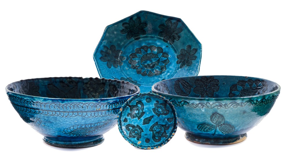 There is a guide to Istalif pottery on the Jindhag Foundation site. I especially like the motifs used to decorate this fine handmade pottery so something loosely similar will be added to the blue border using black thread and free motion machine stitch