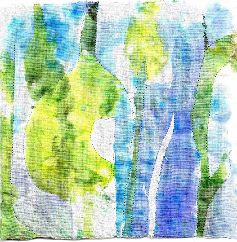 I have a few textile versions in various stages of completion but never quite finished, the one I’m posting here had a wide border I didn’t like which I removed last year, now I am adding a blue border which will be embroidered.
