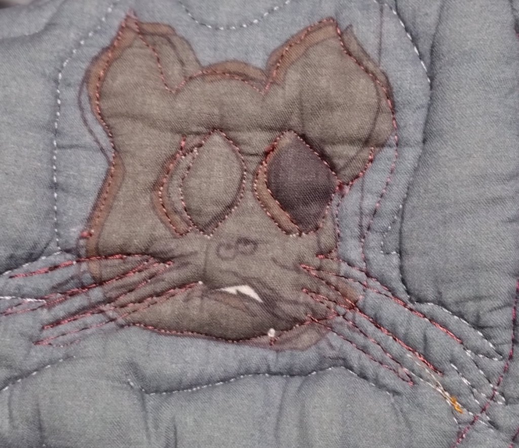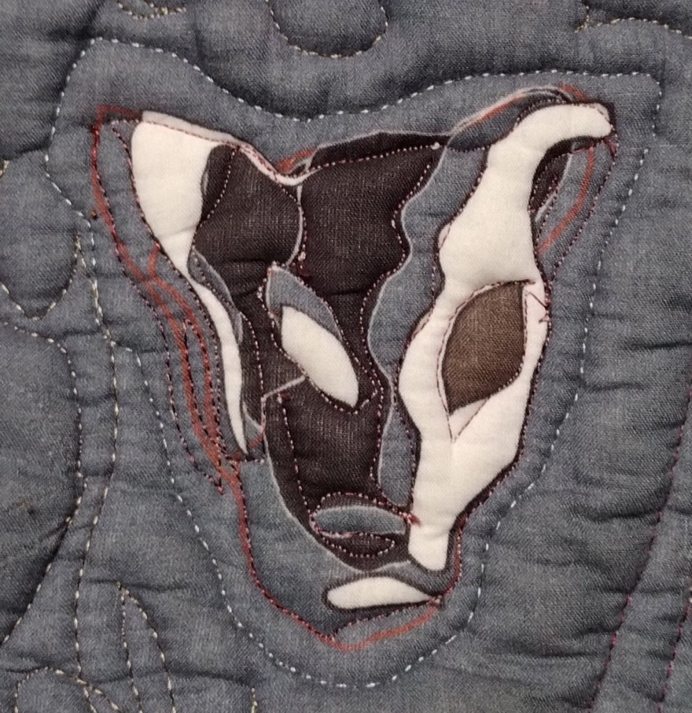 Having finished seven hare masks I was pondering making other animals such as badger, hedgehog, deer, owl & c. perhaps using the designs from the Animal Masquerade set (artist’s book, house-coat and quilt) I made several years ago.