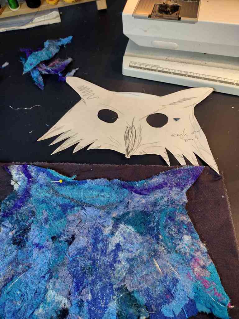 The magnificent eagle owl survives in England in the north east apparently due to escapes or deliberate releases, possibly just migrating from mainland Europe now and then. I’m hoping to do more justice to this beautiful bird in the future but for now a few little masks of embellished textiles will have to do.