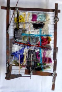 Meltdown in metal frame1 Meltdown1, 25cm x 18cm, embellished & embroidered fibres and steel, 2018 Post author By Chris Miller Post date June 22, 2018 No Comments on Meltdown in metal frame1 Like Loading... Leave a comment Cancel reply Δ